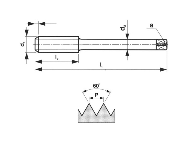 Strojný závitník pre metrický závit so skrutkovitou drážkou.