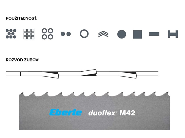Zvýšená pružnosť nosiča a vysoký obsah legujúcich prvkov v reznej časti (Mo, Co) zaručujú veľmi dlhú životnosť pílového pásu