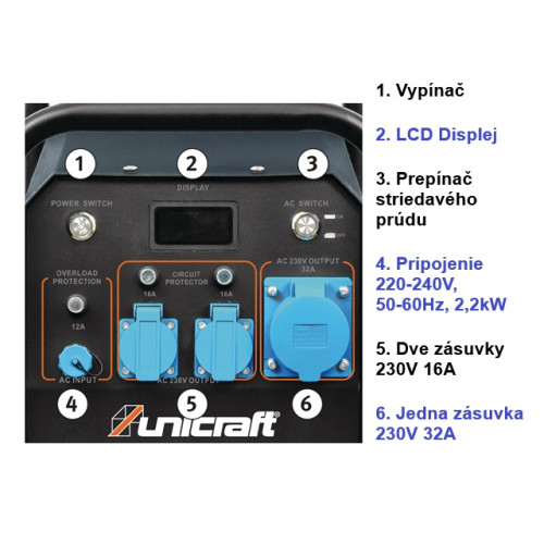 | Výstupná AC zásuvka | 3x230V / 50Hz / 360W (špičkový výkon 7200W) |