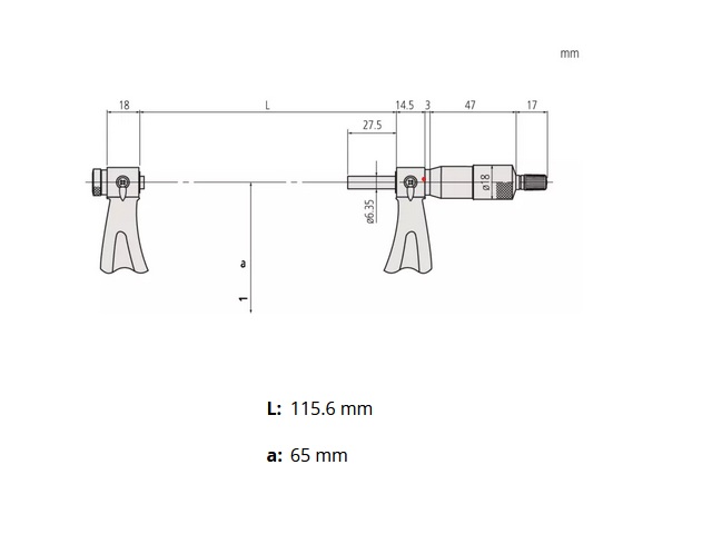 Mitutoyo mikrometer s ľahko vymeniteľnými dotykmi / hrotmi vretena.