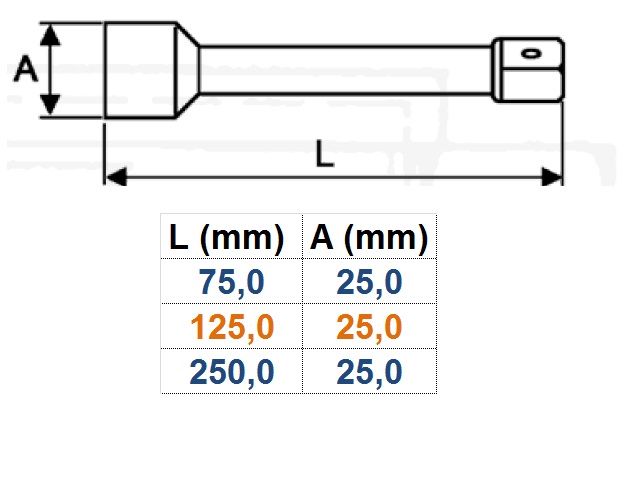 1/2" nástavec priemyselný 4Czech CrMo + trň + o-krúžok - 250mm